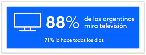 El 51% de los argentinos utiliza Internet para obtener más información sobre productos o servicios vistos en la televisión y un 40% realiza compras en línea después de ver un anuncio en la TV. Mientras que los jóvenes de 18 a 24 años son más propensos a ver televisión en dispositivos como notebook/laptop, tablet o smartphone/teléfono celular.