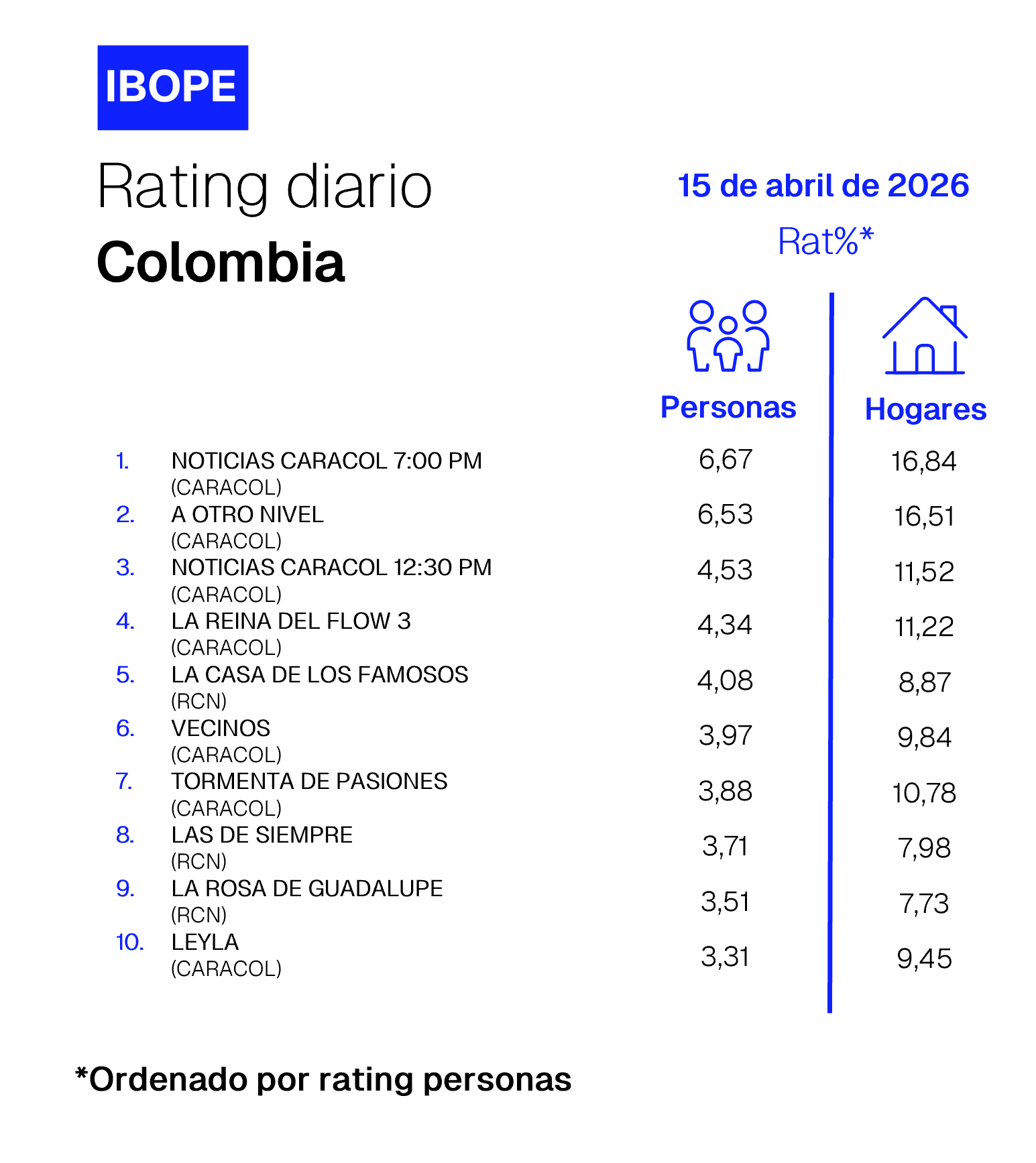 Colombia Rating TV – 04/15/2026