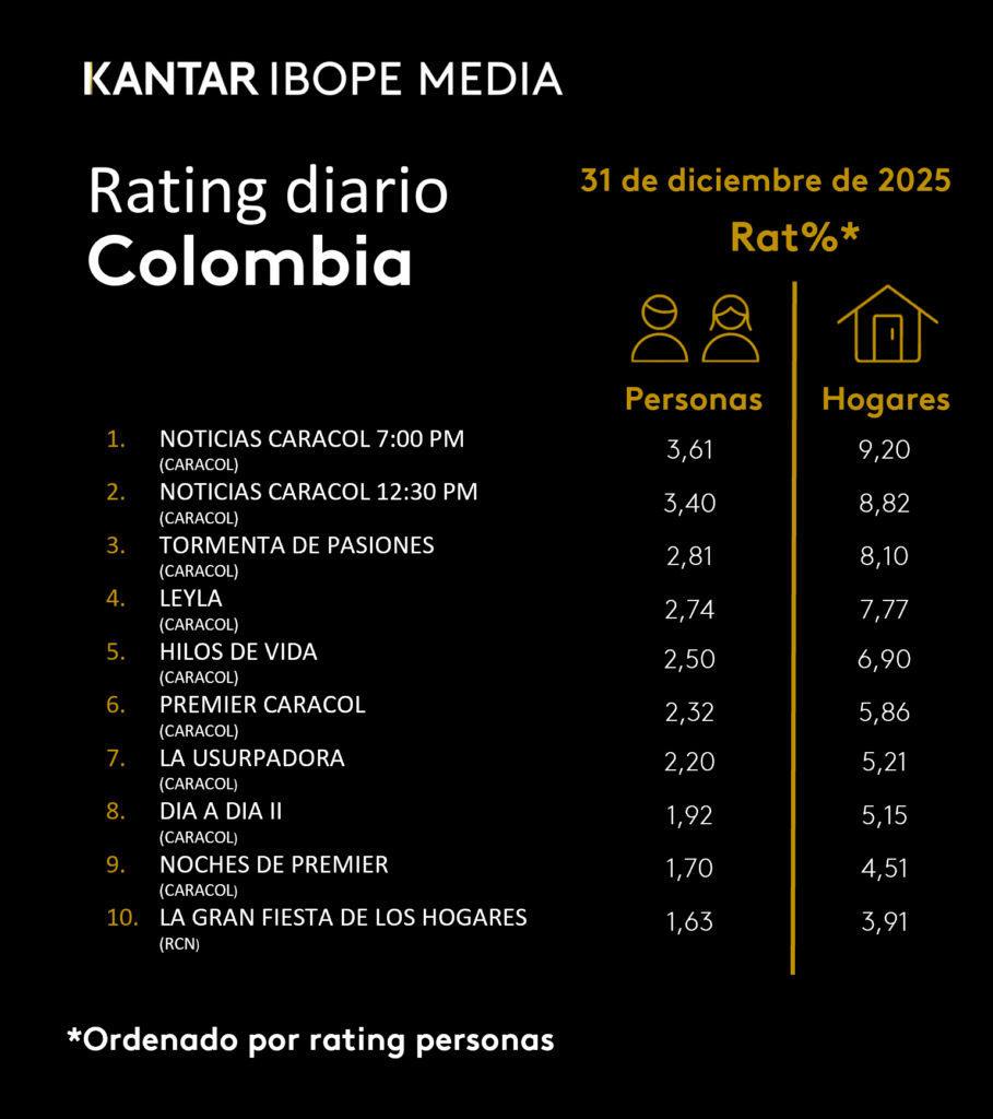 Colombia Rating TV – 12/31/2025