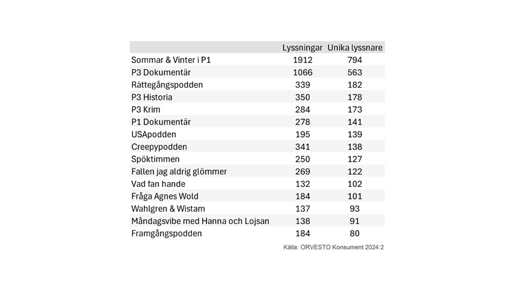 Nedan listas de 15 största poddarna i 2024:2