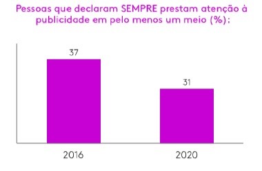 Em 5 anos, o percentual de pessoas que sempre prestam atenção à publicidade caiu 16%.
