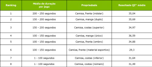 Confira no quadro abaixo mais detalhes sobre as propriedades dos uniformes que mais dão retorno aos patrocinadores: