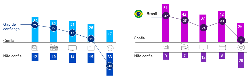 Dados do estudo global Dimension: A Mídia & Eu, realizado pela Kantar IBOPE Media antes da pandemia, já indicavam que a confiança do consumidor é maior nos meios jornal, rádio e TV, o que impulsiona o consumo e o compartilhamento de notícias.